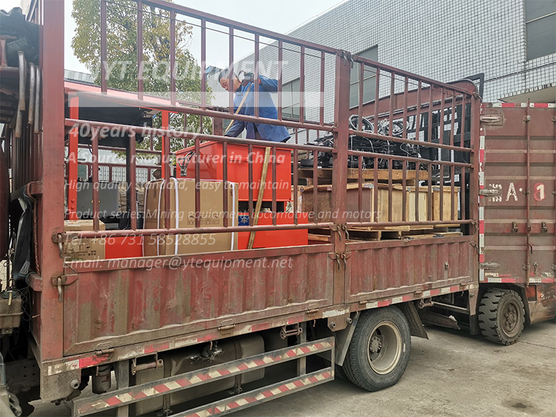 Locomotiva elétrica com bateria de 2.5 toneladas e peças enviadas para a mina
